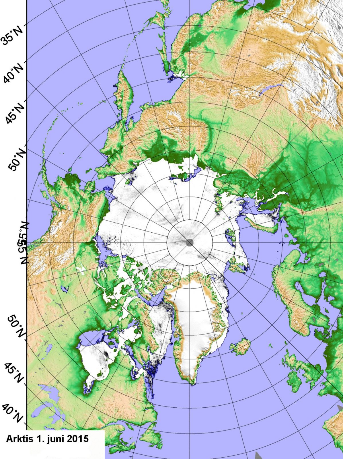 Her er den månedlige isoversikten for Arktis med iskart for 1. juni 2015. Redaksjonen har oppdatert 4.juni med data for isutbredelse siste 10 år samt fersk info om seilingsforholdene på Grønland.