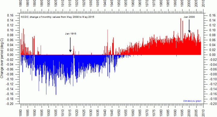 Pussig nok har varmeperioden fra midten av 1970-årene også blitt mye lengre, etter jukstering starter den allerede i 1950-årene. De største endringene er ved enda en pussighet gjort i nyere tid, og for de årene hvor man har best kvalitet på rådataene. (edit) Og trenden de finner er: Moreover, for 1998–2014, our new global trend is 0.106± 0.058°C dec−1, and for 2000–2014 it is 0.116± 0.067°C dec−1 (see table S1 for details). Disse nye og påstått riktigere dataene viser at det tar nesten 200 år å oppnå en økning på 2 grader i global temperatur – dersom trenden fortsetter. Hva har dette å si for de politikerne som driver med Togradersgnålet?