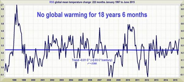 Figuren vi viser her er kalkulert for å finne den lengste perioden uten noen signifikant trend. For en grundigere analyse viser vi til dette oppslaget på WUWT.