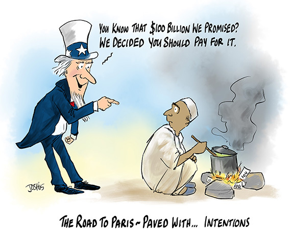 Dermed sitter de mest klimakåte delegasjonene i klemma. Svært få vestlige politikere kan overleve oppstyret hjemme når velgerne opplever at deres land skal ut med en andel av (minst) 100 milliarder USD hvert år, delvis fordi G77-landene ikke skal innføre meningsfylte klimatiltak før tidligst 2030. Spesielt i Frankrike som har tradisjon for politiske opptøyer vil det bli interessant den dagen velgerne oppdager at det ikke eksisterer noen klimakrise og at statskassen nærmest er tom.