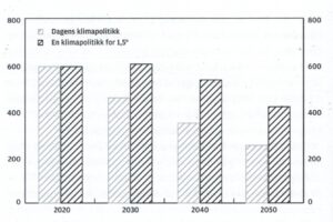 Hvis verden derimot følger dagens klimapolitikk, vil antallet som sulter falle til 250 millioner mennesker. Dagens klimapolitikk gir i følge denne analysen 150 millioner færre sultne i 2050 enn en streng klimapolitikk vil gjøre.