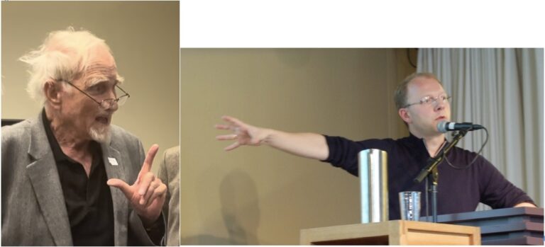 Fysiker og Nobelprisvinner i fysikk Clauser til venstre, og fysiker Samset, Stortingets og 97 prosent av norske redaktørers fysikerhelt, Bjørn H. Samset til høyre. Clauser i 2025, Samset i 2021. Foto: OBB